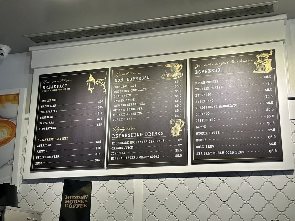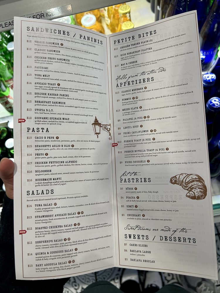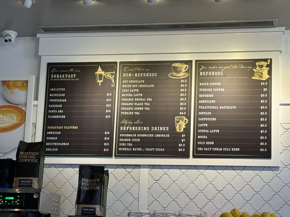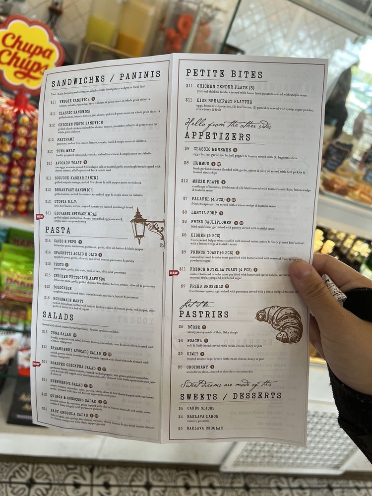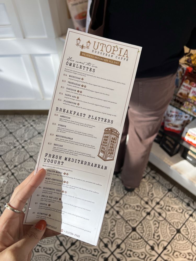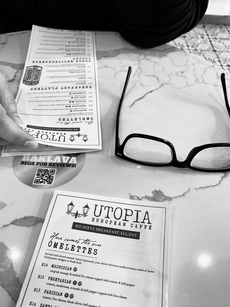 Introducing the menu at Utopia Caffe, a trendy and intimate cafe located in Tustin, CA. Offering a diverse range of options, from omelettes like the Madridian soujouk sausage with melted five cheeses to fresh Mediterranean yogurt topped with fruity delights. The American platter and classic sandwich showcase delicious and filling choices. The cafe's decor transports you to Istanbul, with imported items from Europe adding to the ambiance. Customers rave about the friendly staff, delicious Turkish coffee, and flavorful dishes. Vegan options are available, catering to a variety of dietary preferences. Don't miss out on the big portions, cute decor, and lovely outdoor seating at Utopia Caffe. This elegant brunch spot with a Parisian vibe is a must-try for any food enthusiast.